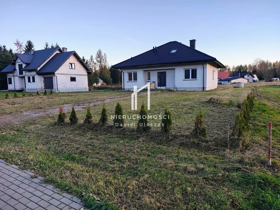 Dom posadowiono na płaskiej działce o powierzchni 1366m2 obecnie wyplantowanej i gotowej do zaaranżowania ogrodu oraz wykończenia podjazdu.
